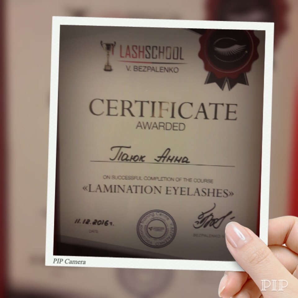 Сертифицированный мастер по ламинированию и наращиванию ресниц.
