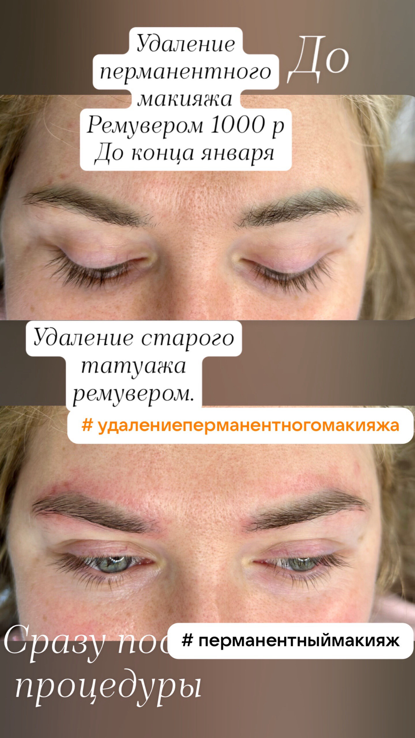 - удаление перманента бровей ремувером i